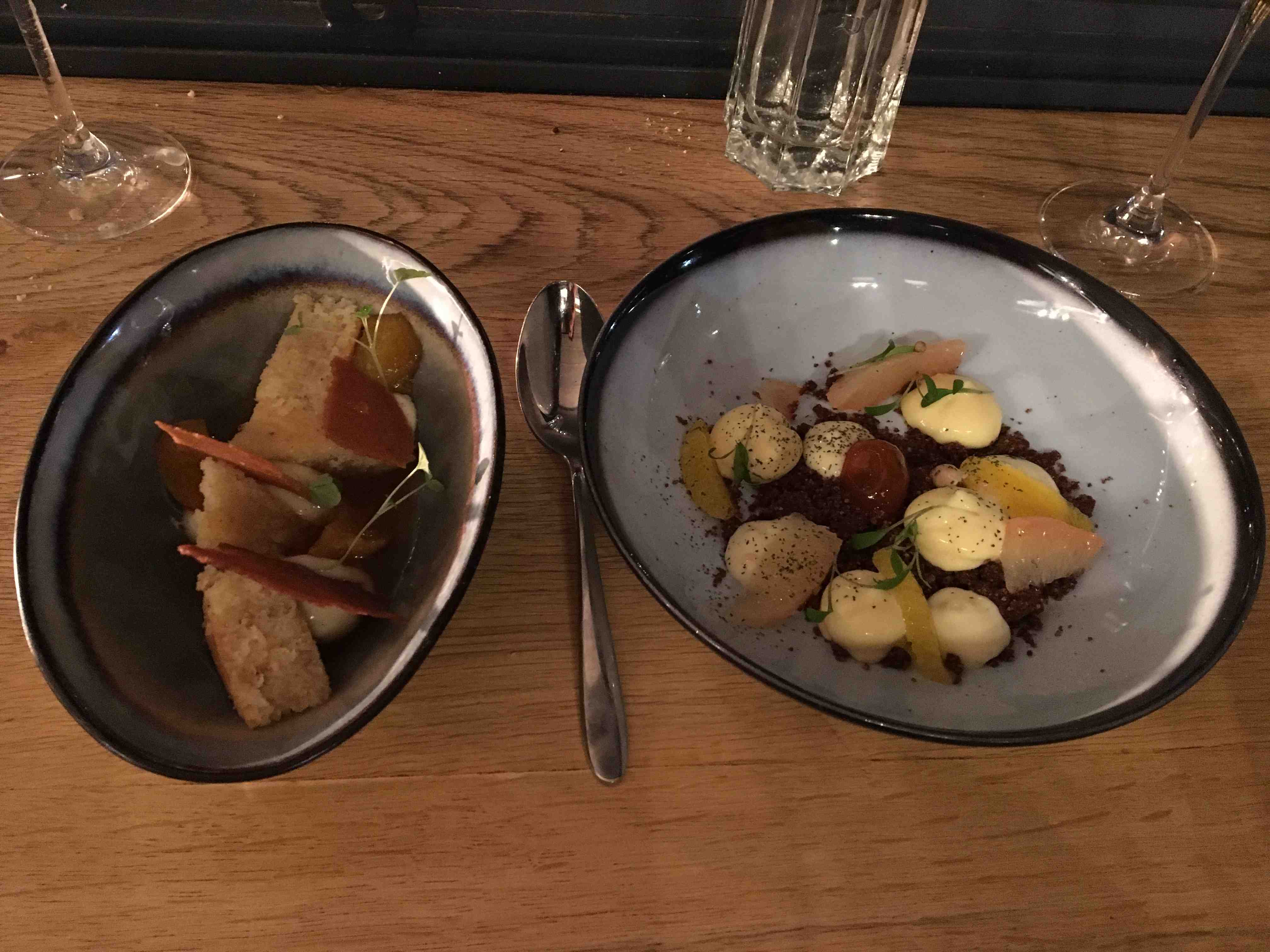 5 Les desserts du jours, crumble de caco et financier au thym