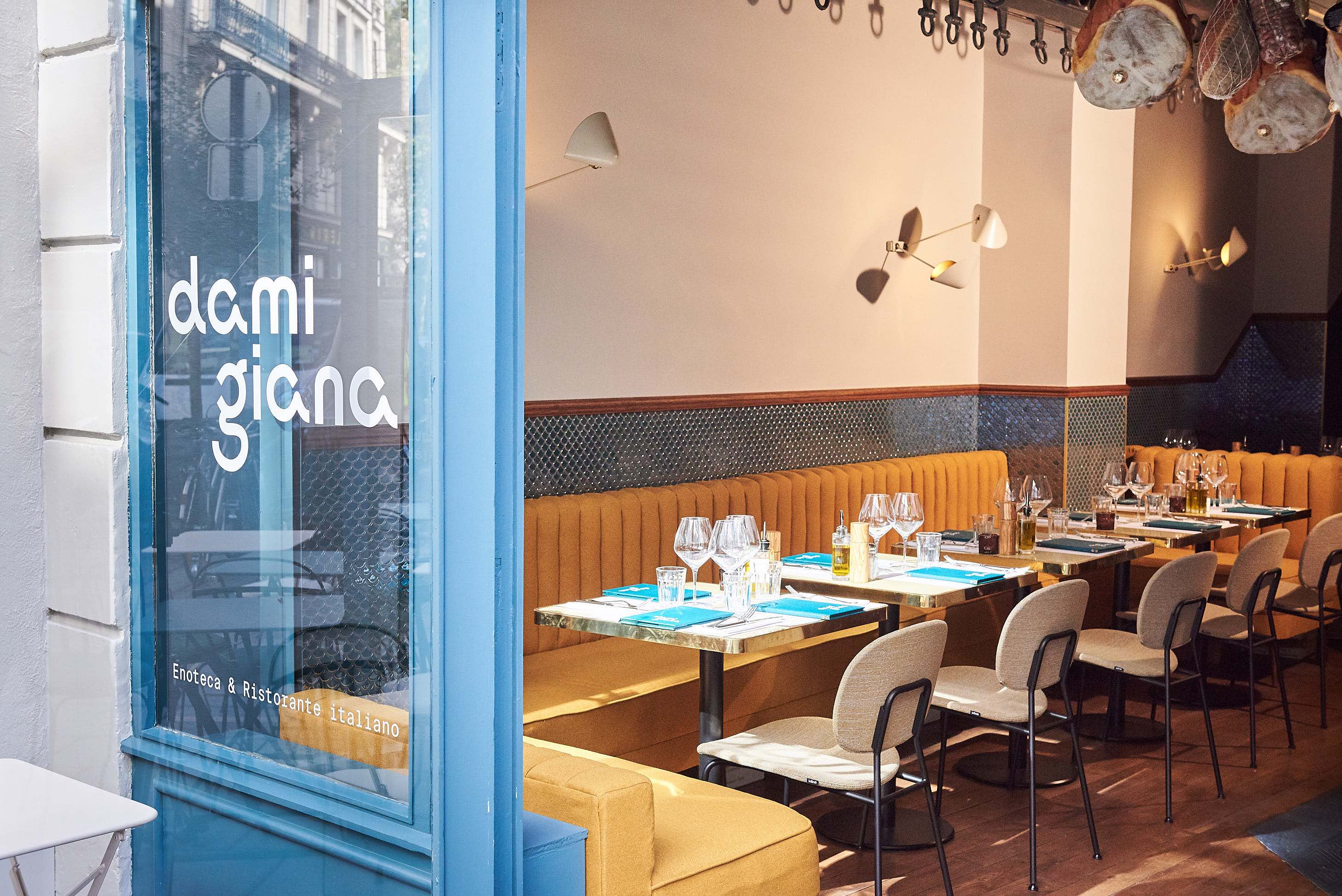 La seconde adresse du duo Laura et Bastien Corinti (après Merrigio en 2016) vient d’ouvrir près des Halles. Les deux jeunes frères et sœurs y déploient les mêmes recettes. A savoir des produits très finement sourcés auprès de petits artisans italiens qu’ils font venir en exclusivité chez eux, de la charcuterie (délicieuse et fondante) aux légumes, en passant par les vins qui s’affichent sur une carte audacieuse privilégiant les cuvées peu connues et originales. Le couple profite de l’appel d’air des Big Mamma pour recruter un personnel de salle et de cuisine 100% italien qui apporte une certaine authenticité sans pour autant tomber dans le cliché. D’ailleurs, la déco de Damigiana n’a rien de folklorique : l’ancienne boucherie des Halles qu’ils ont investi a conservé son système de poulies auquel la barbaque était alors accrochée. Des fauteuils confortables et moelleux, une lumière tamisée, du velours, du bois et des carreaux de céramique… Bref, le combo gagnant des restos à la mode du moment. La touche italienne, outre l’accent du personnel, on la trouve dans la carte, courte et régulièrement actualisée, qui aligne les recettes auxquelles les italiens de là-bas sont sensibles. Et c’est bien ce que souhaitaient Bastien et Laura : retrouver la cuisine qu’ils aiment de l’autre côté des Alpes mais chez eux, ici, à Paris…